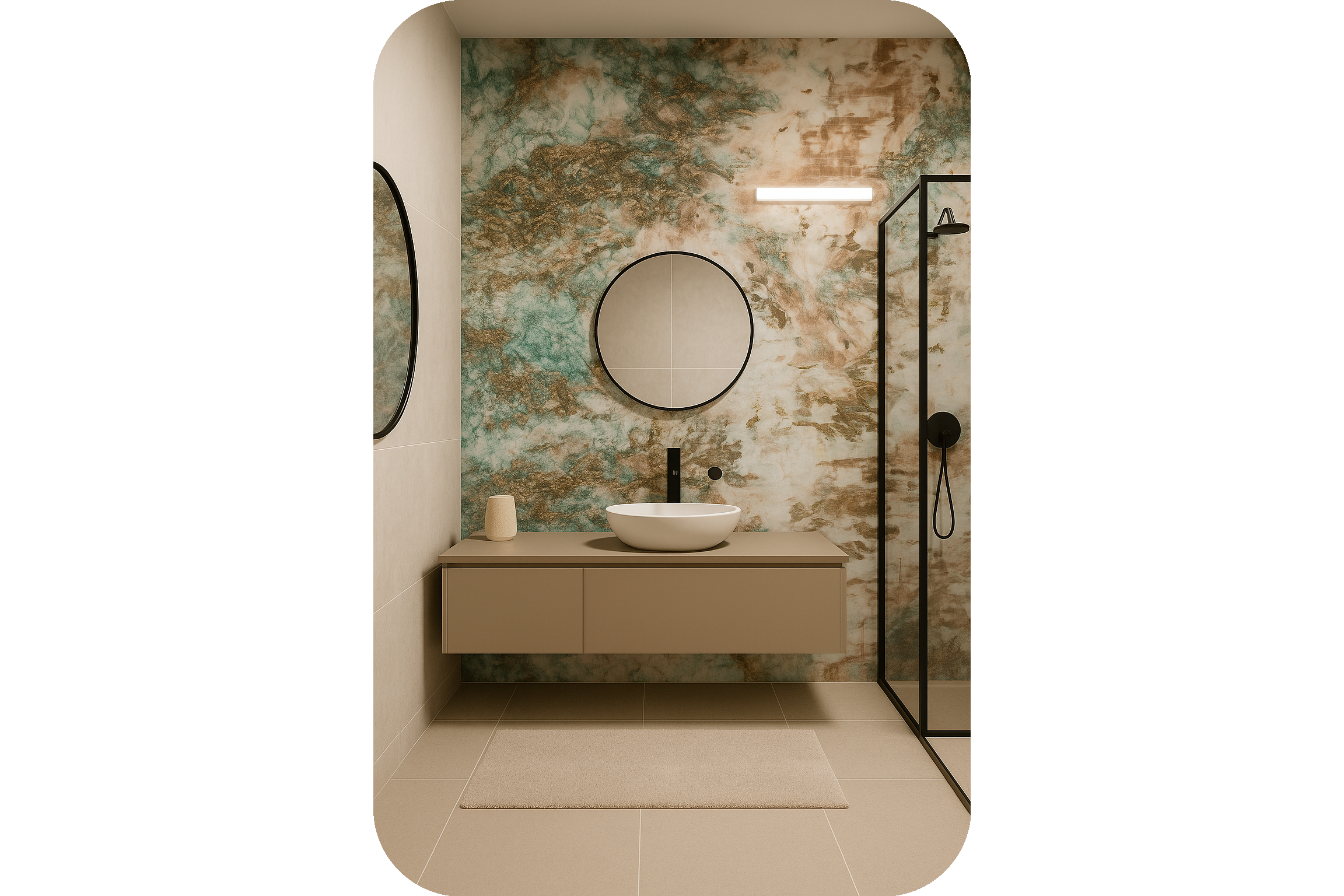 Se montează rapid si ușor, direct pe faianță, gips-carton, tencuială sau alte suprafețe plane, oferind un finisaj impecabil si durabil.