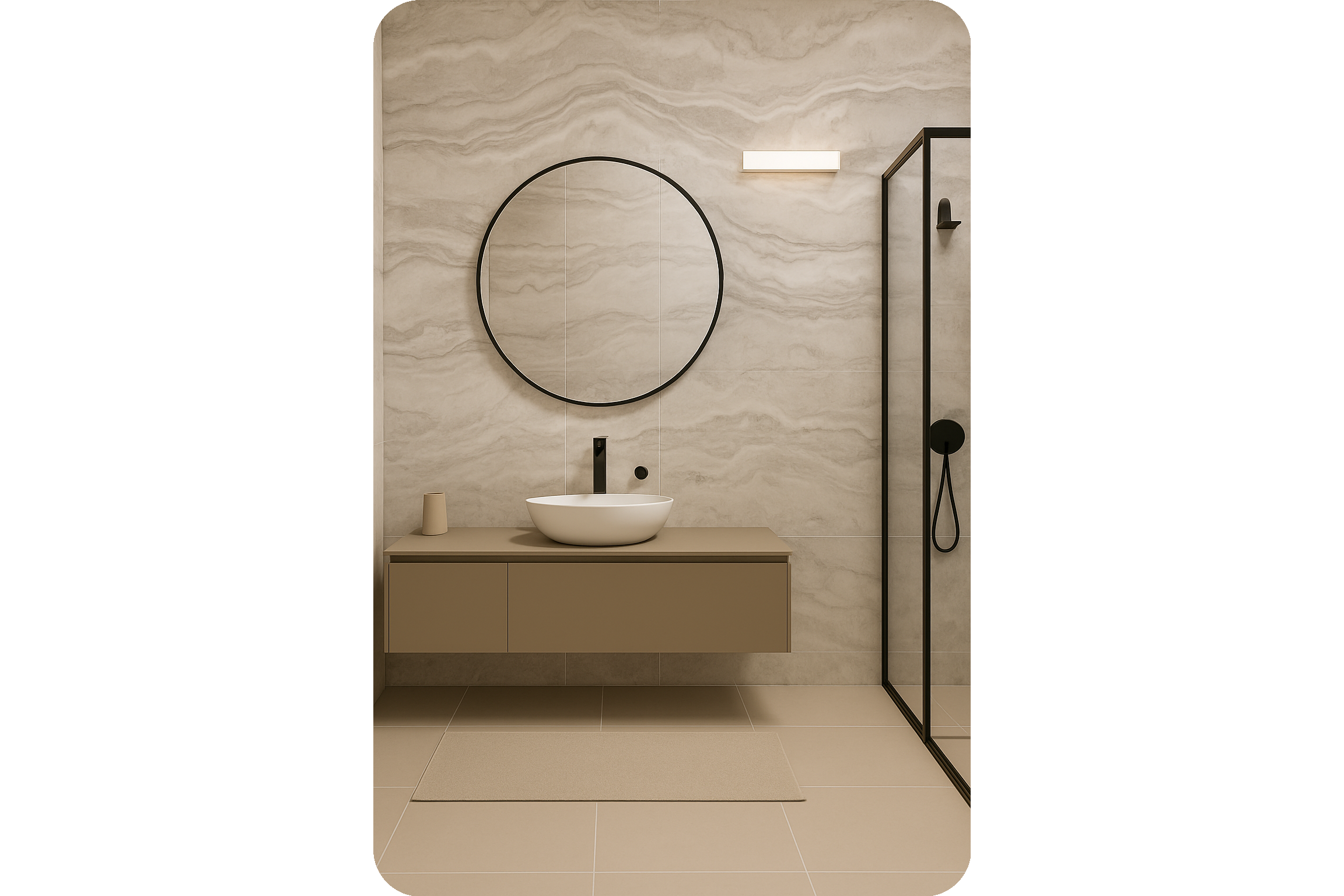 Se montează rapid si ușor, direct pe faianță, gips-carton, tencuială sau alte suprafețe plane, oferind un finisaj impecabil si durabil.