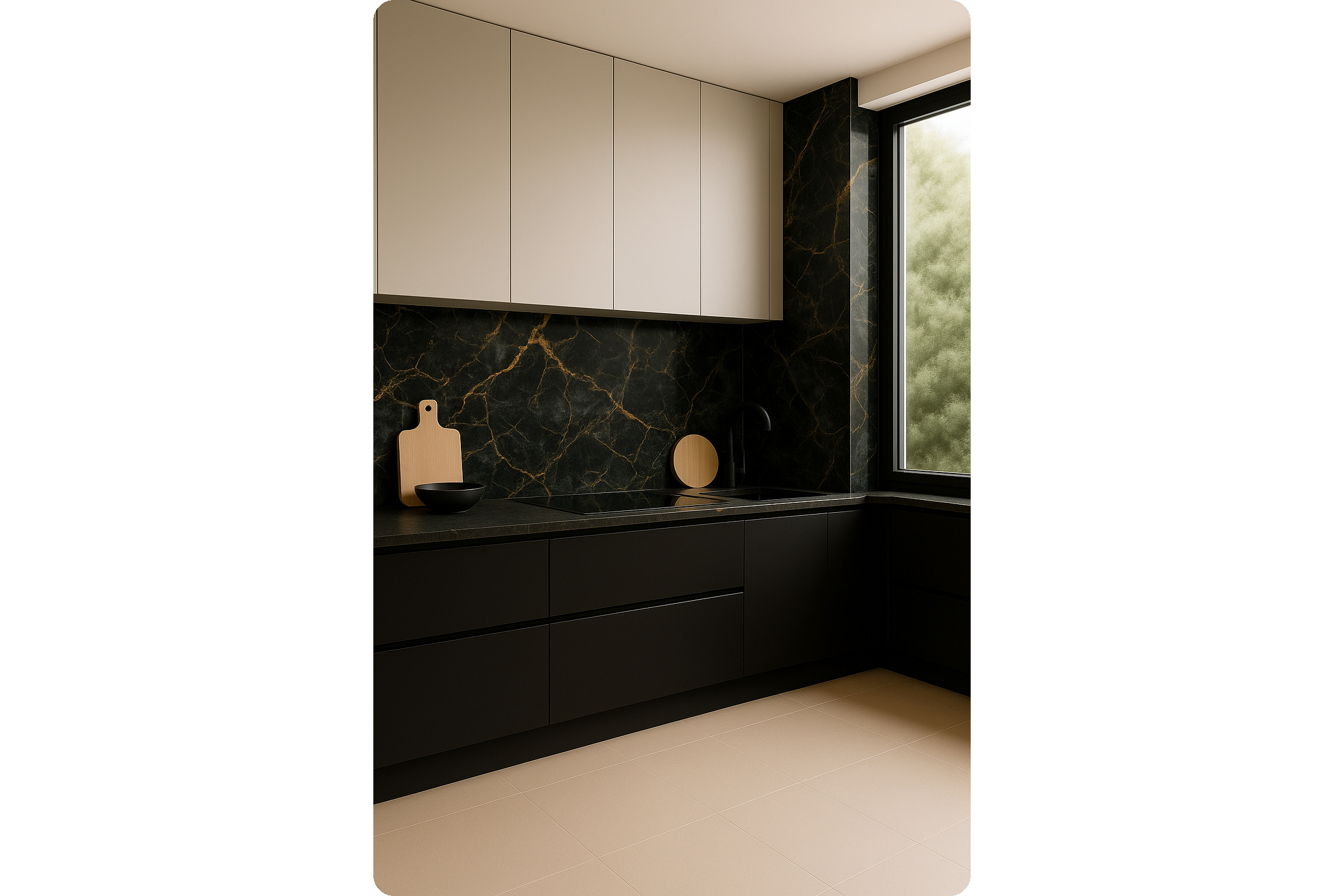 • Creează un efect vizual spectaculos prin contrastul dintre negru și auriu