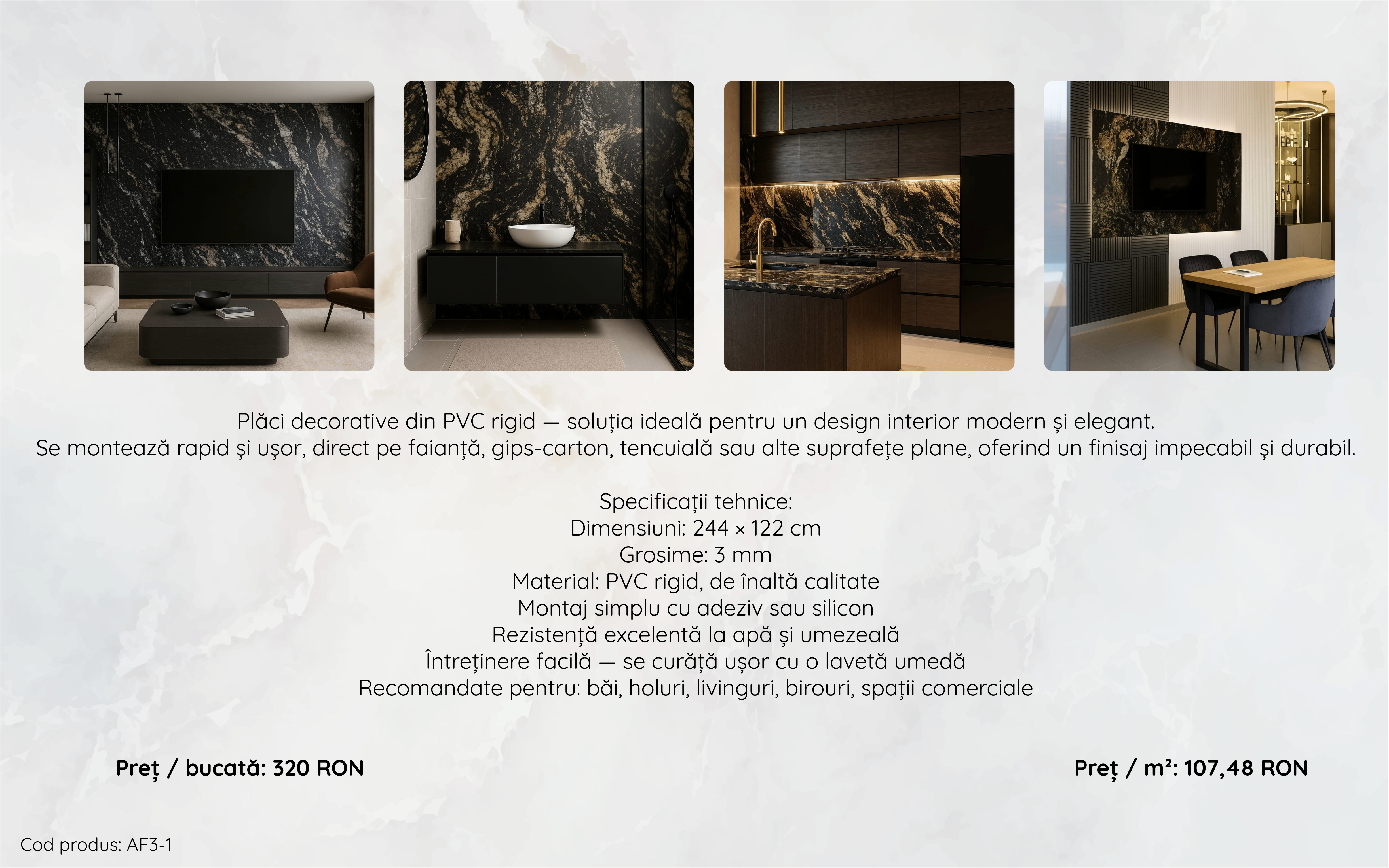 Fii primul care scrii o recenzie pentru „Panou PVC negru cu inserții aurii”