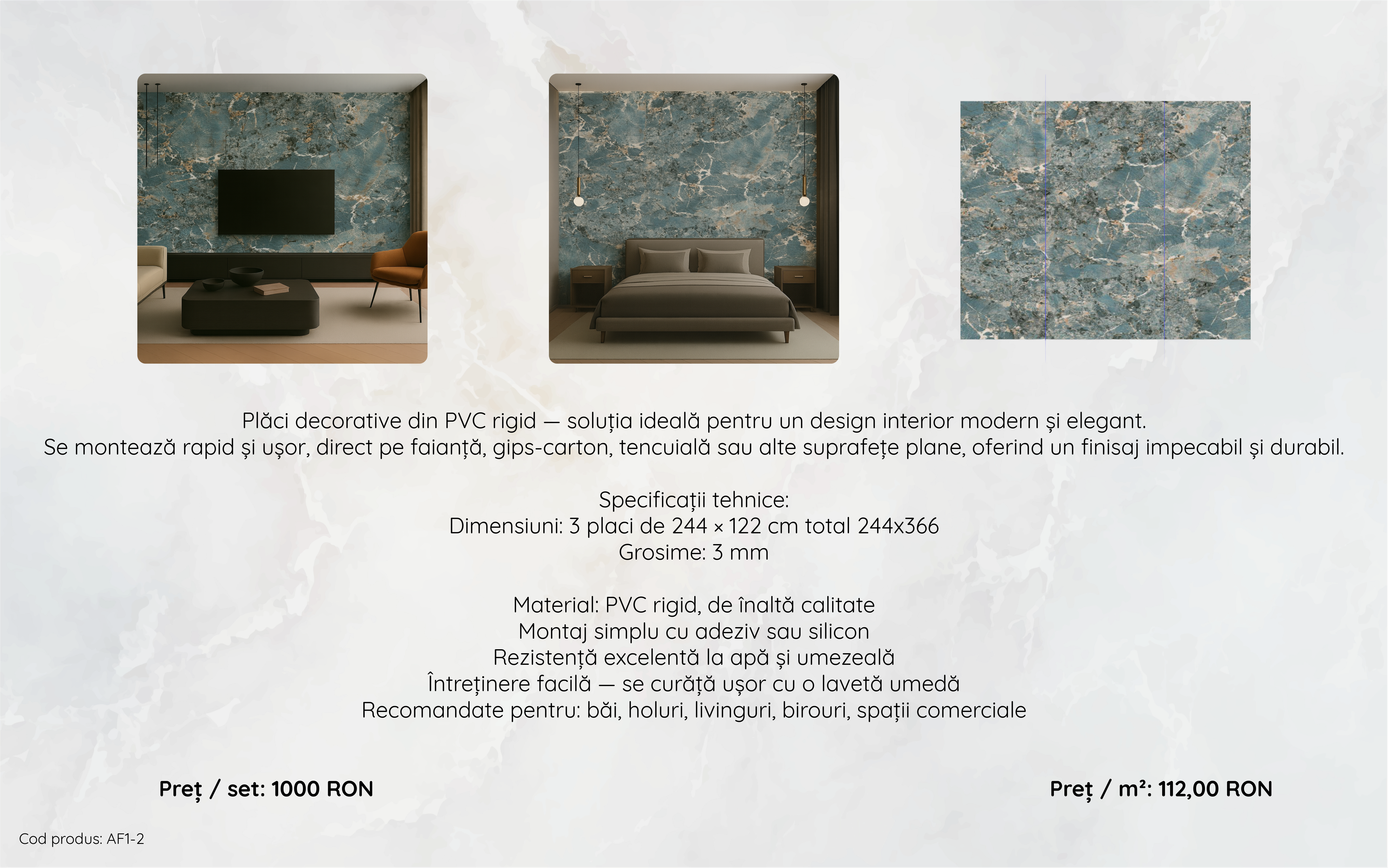 Material: PVC rigid, de înaltà calitate Montaj simplu cu adeziv sau silicon